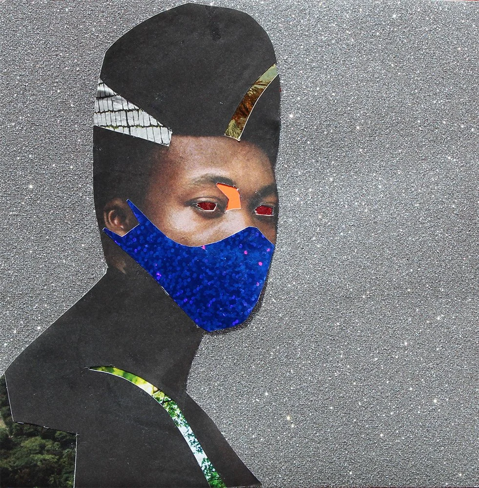 Mixed Media Paper Collage on Glitter Paper